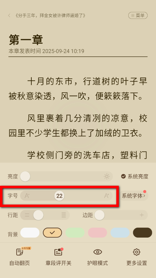 4、在设置页面,通过A-或A+按钮调整字体大小,即可完成字体大小设置。