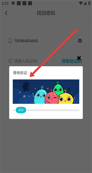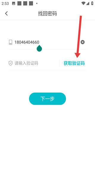 3、在找回密码界面,输入手机号码后点击获取验证码。