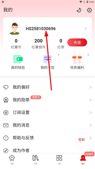 1、在红薯小说首页,点击底部我的,进入个人页面。