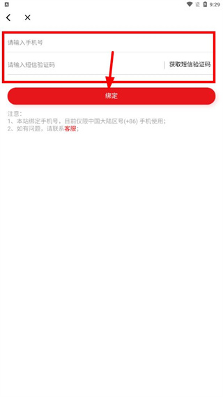 4、在输入手机号,获取短信验证码并输入,点击绑定,完成手机绑定操作。
