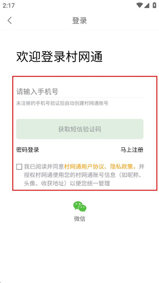 3、在登录页面,输入手机号,获取短信验证码进行登录。