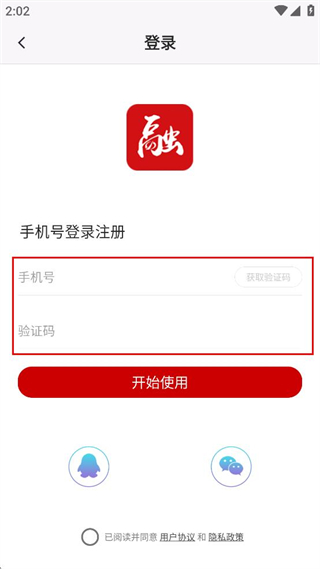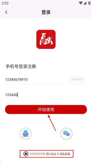 4、勾选已阅读并同意用户协议及隐私政策,点击开始使用。