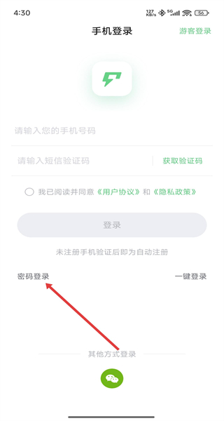 2、在登录界面,点击密码登录选项,切换到密码登录模式。