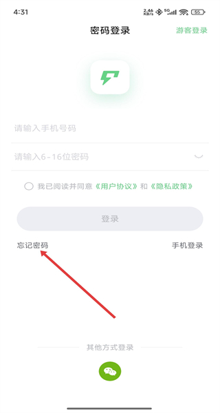 3、在密码登录界面,点击忘记密码选项,进入忘记密码界面。