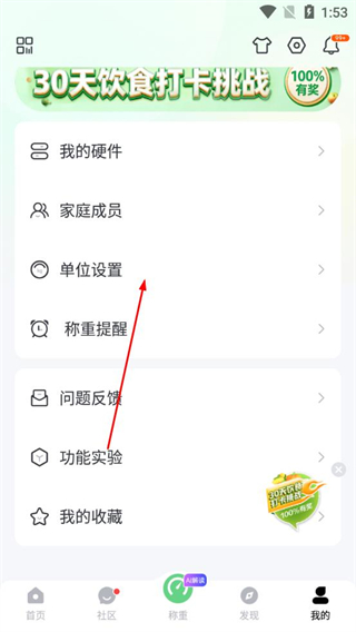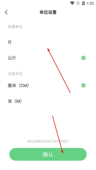3、在单位设置页面的体重单位中选择斤,点击确认。