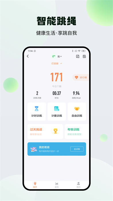 智能跳绳多种玩法,还可以与百万网友来一次云上跳绳PK。