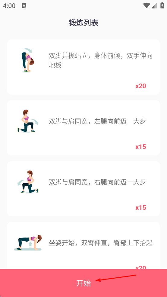 4、在锻炼列表内,熟知后点击下方开始的按钮即可。