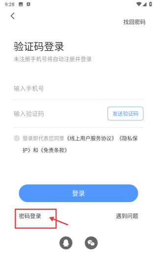 3、在登录选择界面,点击密码登录选项,切换至账号密码登录模式。