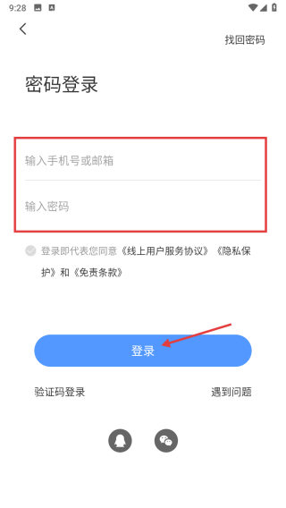 4、输入手机号或邮箱和密码,勾选协议后点击登录按钮,完成账号登录操作。