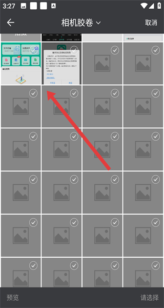 4、在相机胶卷界面,选择需要扫描的图片,即可进行后续的扫描、识别或格式转换等操作。