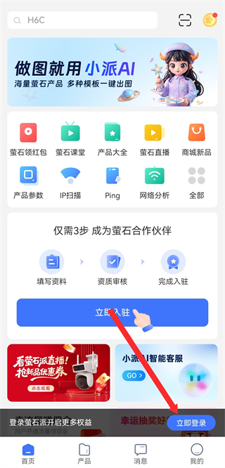 1、打开萤石派APP,点击我的,进入个人页面后点击立即登录。