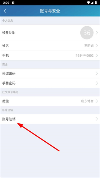 4、在账号与安全页面,点击账号注销,按提示完成账号注销操作。