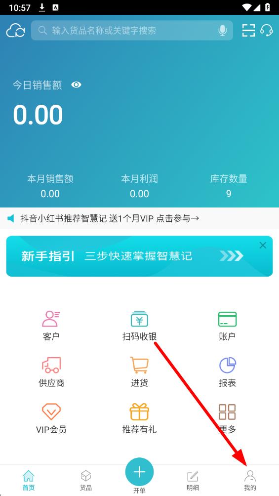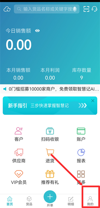 1、打开智慧记app,在首页点击底部导航栏最右侧的我的选项。