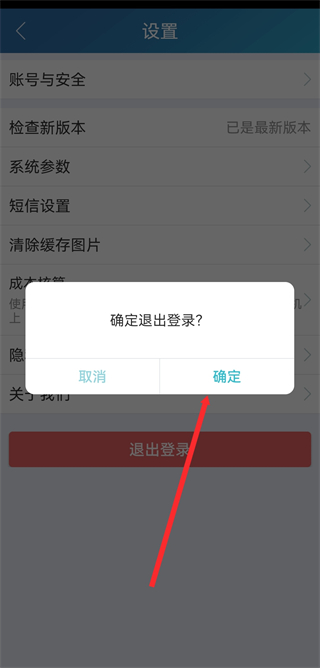 4、在弹出的系统提示框中,点击确定完成退出登录操作。