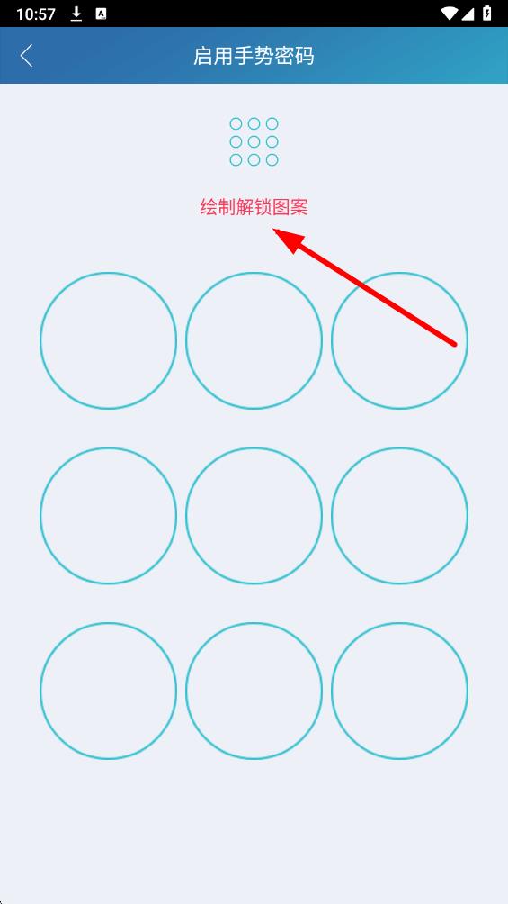 4、进入启用手势密码界面后,按照提示绘制解锁图案,完成手势密码的设置。