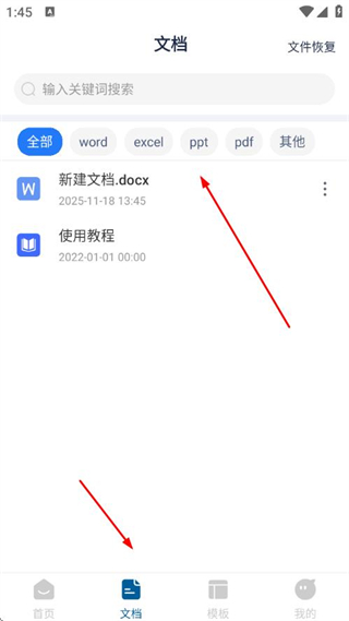 3、保存后,点击底部文档,即可在文档列表中查看保存的文档。