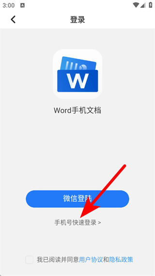 3、在登录的页面,我们需要点击下方的手机号快速登录。
