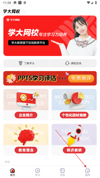 1、打开学大网校APP,点击我的选项,进入个人页面。