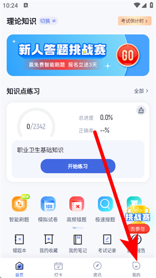 1、打开职业病诊断医师考试聚题库,在首页点击底部我的。