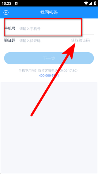 3、在忘记密码页面,输入手机号,点击获取验证码。