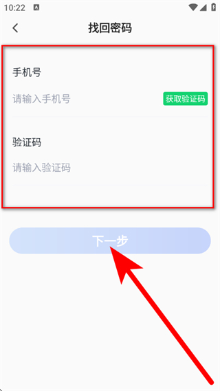 4、输入手机号,输入验证码后,点击下一步,完成密码找回操作。