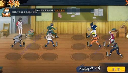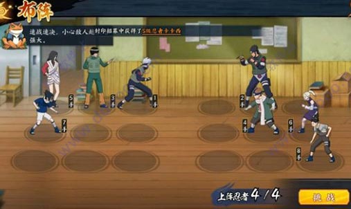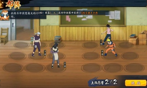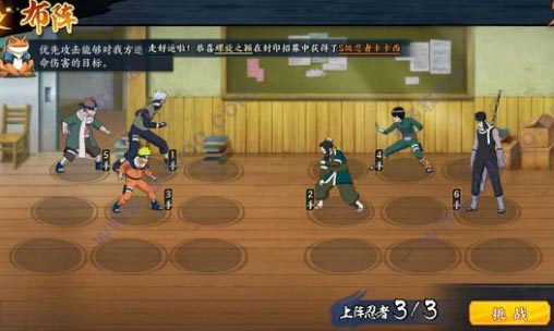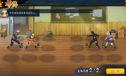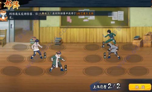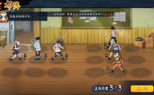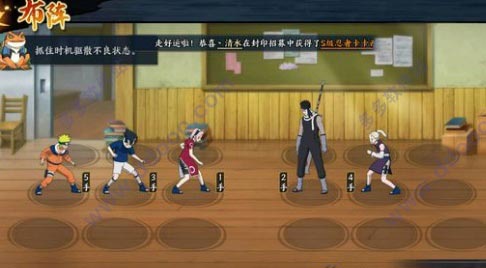 过关思路:佐助必须1号位,第二回合在敌方3手井野治疗之前释放奥义点燃丁次。