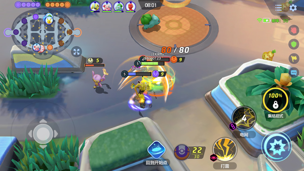其中最大的不同就是宝可梦大集结的单局是有限时的,地图两侧皆有5个得分点,只要捕捉在场地中出现的野生宝可梦,并带进对手阵营的得分点便可得分,在规定时间内,获得更多分数的一方将获得胜利。