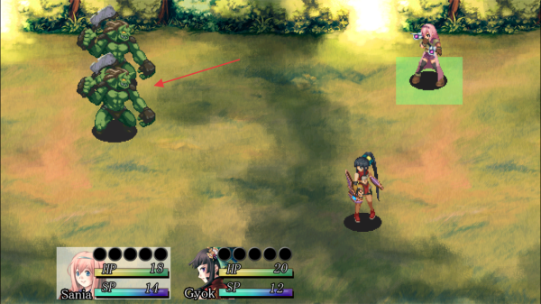 3、进入战斗,注意敌方绿色怪物的攻击。
