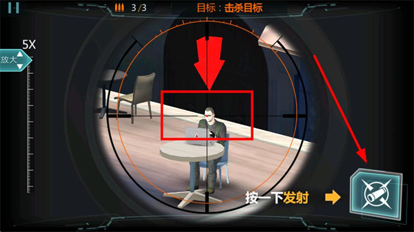 4、瞄准目标后点击发射按钮射击,射击时需把握时机,确保一击毙命,若射击未命中需快速调整位置再次瞄准。