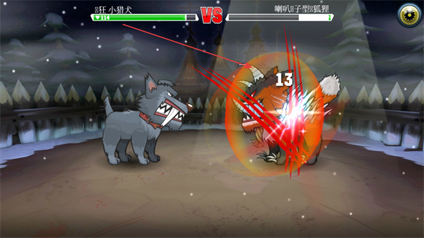 手绘风格搭配夸张的战斗特效,变异狗攻击时的光影效果、技能释放的华丽场面,都能带来强烈视觉冲击,让对战过程更具观赏性。