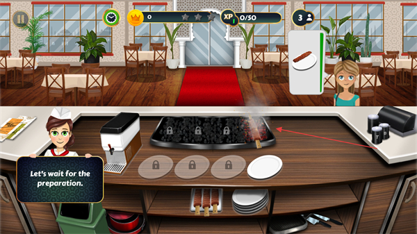 1、等待食材在烤架上完成烤制,界面会有提示Let's-wait-for-the-preparation。