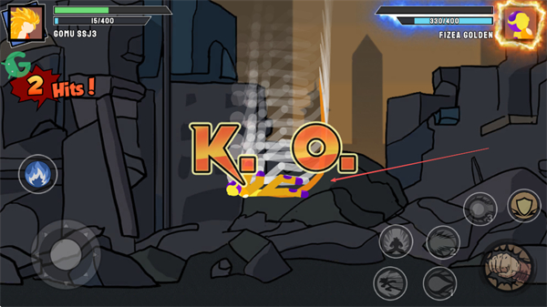 4、不断攻击敌方,直至将其击败,出现K.O.标识,赢得格斗胜利。