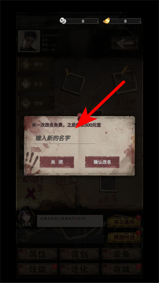 2、在游戏主界面,点击左上角的角色信息区域,弹出改名窗口。