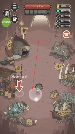 1、根据Movehere!提示,移动角色到指定区域,探索部落场景,解锁新建筑和功能。
