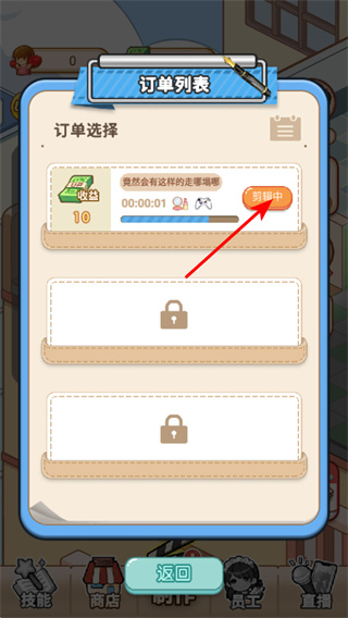 1、游戏中点击带有完成标识的任务图标,可进入订单列表界面,这是领取任务收益、推进业务进程的关键操作。
