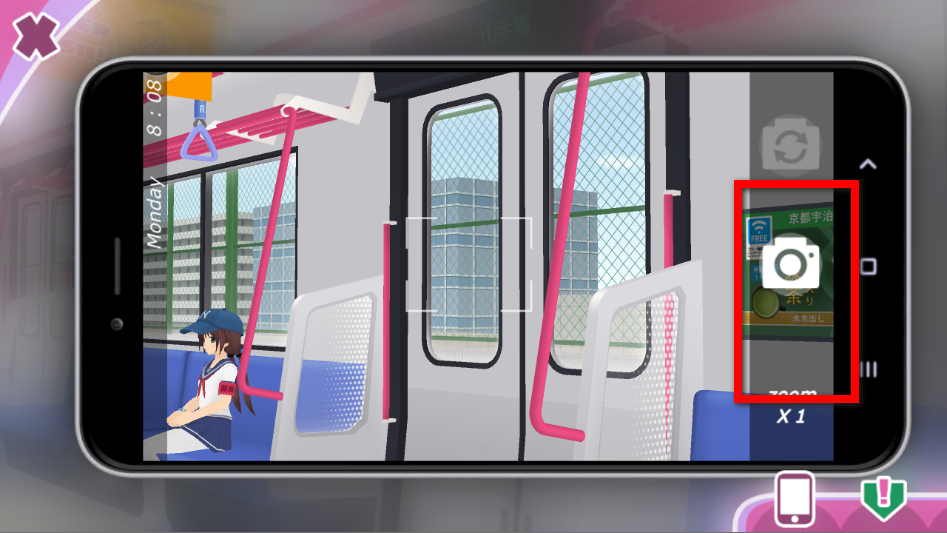 2、在游戏场景中,通过左侧虚拟摇杆控制角色移动,找到拍照场景后点击右下角手机图标。