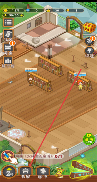 4、解锁书架后返回图书馆场景,点击响应顾客寻书需求。