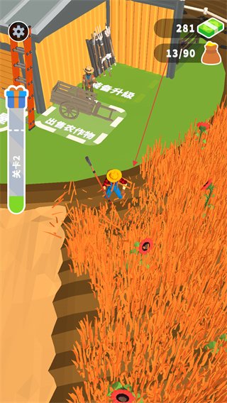 角色默认自动挥舞镰刀收割,仅需滑动屏幕控制移动方向即可,操作简单高效,即便专注升级房屋宠物,也能轻松完成作物收集任务。