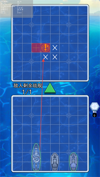 3、攻击敌方战舰的所有占格,将其击沉。