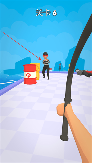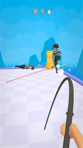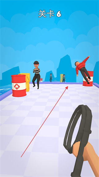 1、在关卡6中,瞄准条纹服装的目标人物,发射皮鞭缠住他们。