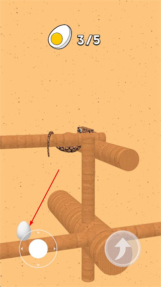 2、继续操控贪蛇,按照箭头指引移动,收集鸡蛋,此时计数变为3/5。