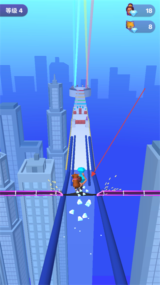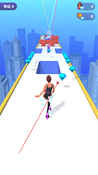 1、在等级4跑道上收集蓝色钻石,同时注意躲避障碍,积累资源。