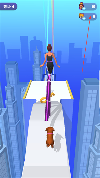 4、在平衡木关卡,控制角色或小狗通过,顺利到达终点,完成新手关卡。