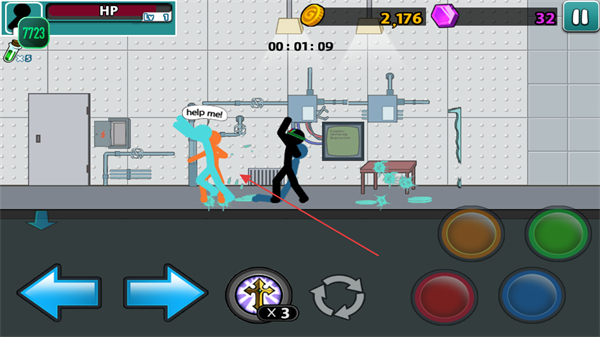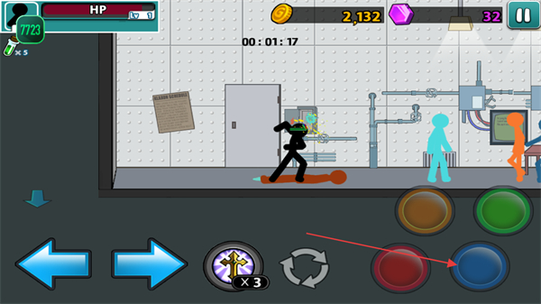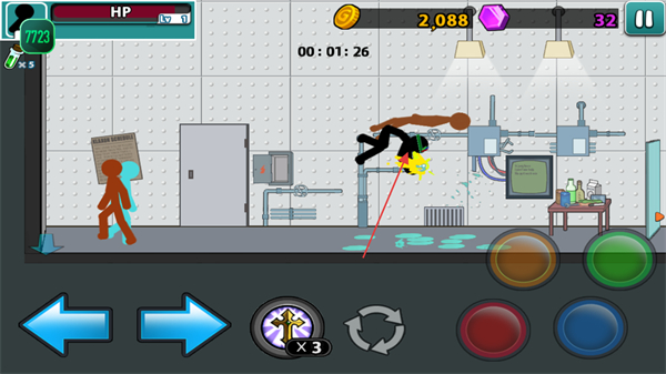 1、操控火柴人与橙色敌人战斗,利用攻击按钮发起连击,快速消灭敌人。