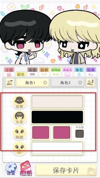 1、点击角色1,可对眉毛、眼睛、嘴巴等面部细节进行调整,打造独特角色形象。