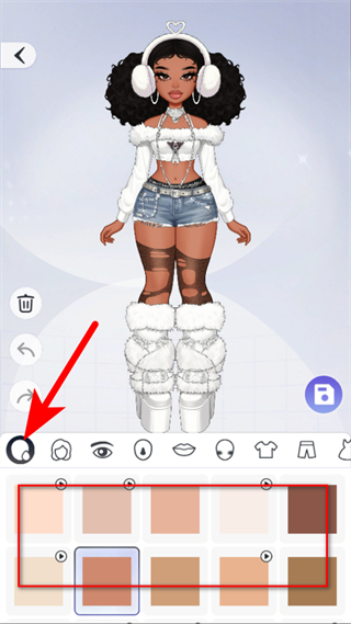 2、在形象编辑界面,点击肤色选项,选择合适的肤色,为角色定制基础形象。