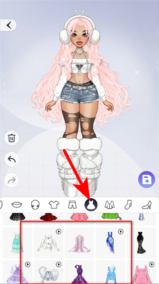 4、点击服装选项,挑选各类风格的服装,为角色搭配出独特的穿搭。