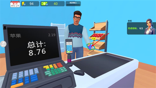 1、根据教程提示,将装有苹果的木箱移动至水果架位置。