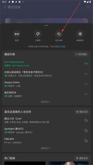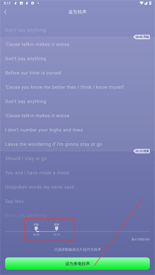 3、进入设为铃声的页面内,设置后点击设为来电铃声即可。
