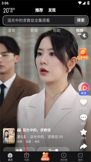 1、在看多多的首页,点击底部的短剧选项,进入短剧页面。